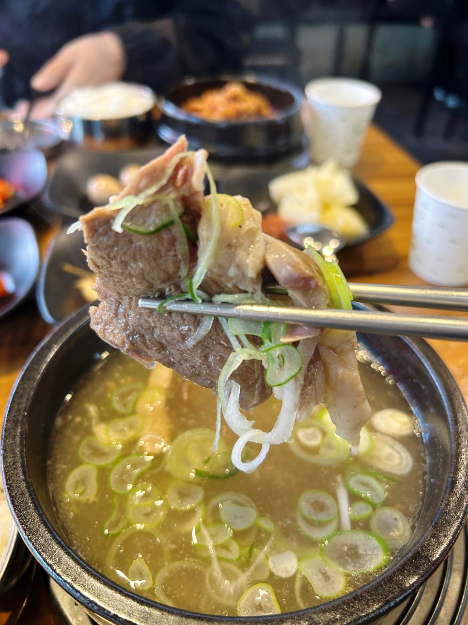 - 소고기맑은국밥 고기 식감이 아주 부드러운 편은 아니에요.