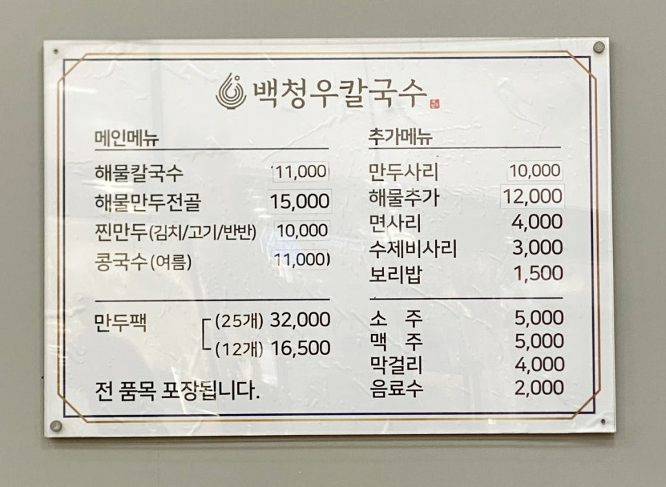 상호에서 알 수 있듯이 메인 메뉴는 칼국수입니다.